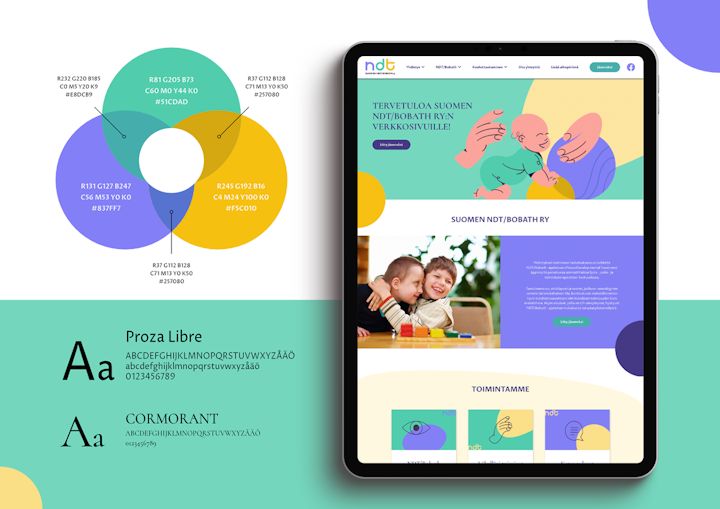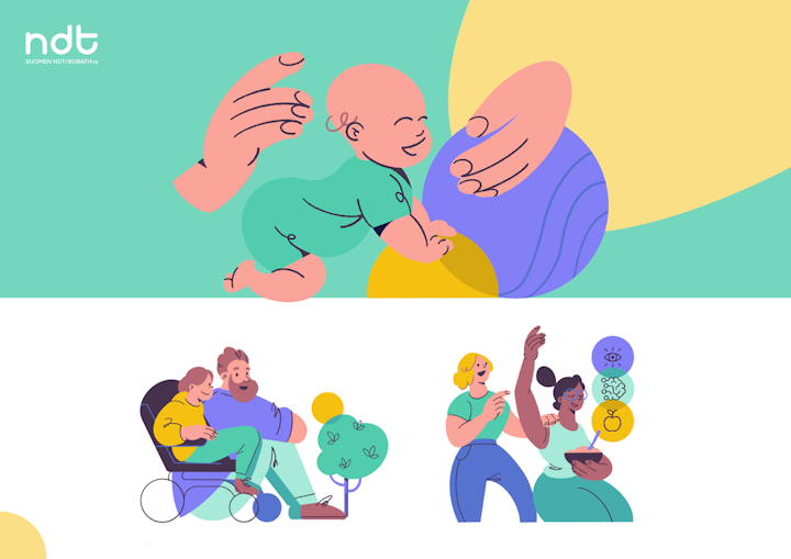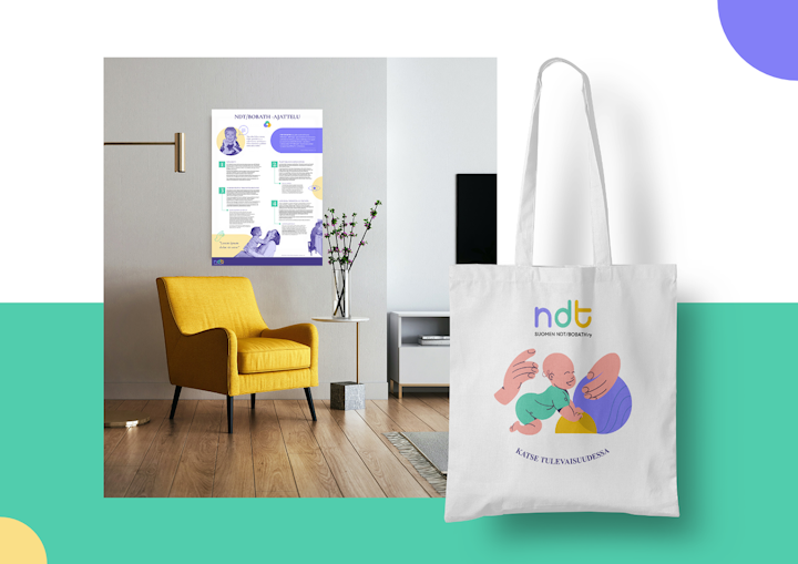 Suunnittelimme ja toteutimme yhdistyksen koko visuaalisen ilmeen päivityksen. Logon lisäksi työstimme ilmeen keulakuvaksi leikkisät ja informatiiviset kuvitukset NDT/Bobath ry:n arvoista sekä ydinviestistä.